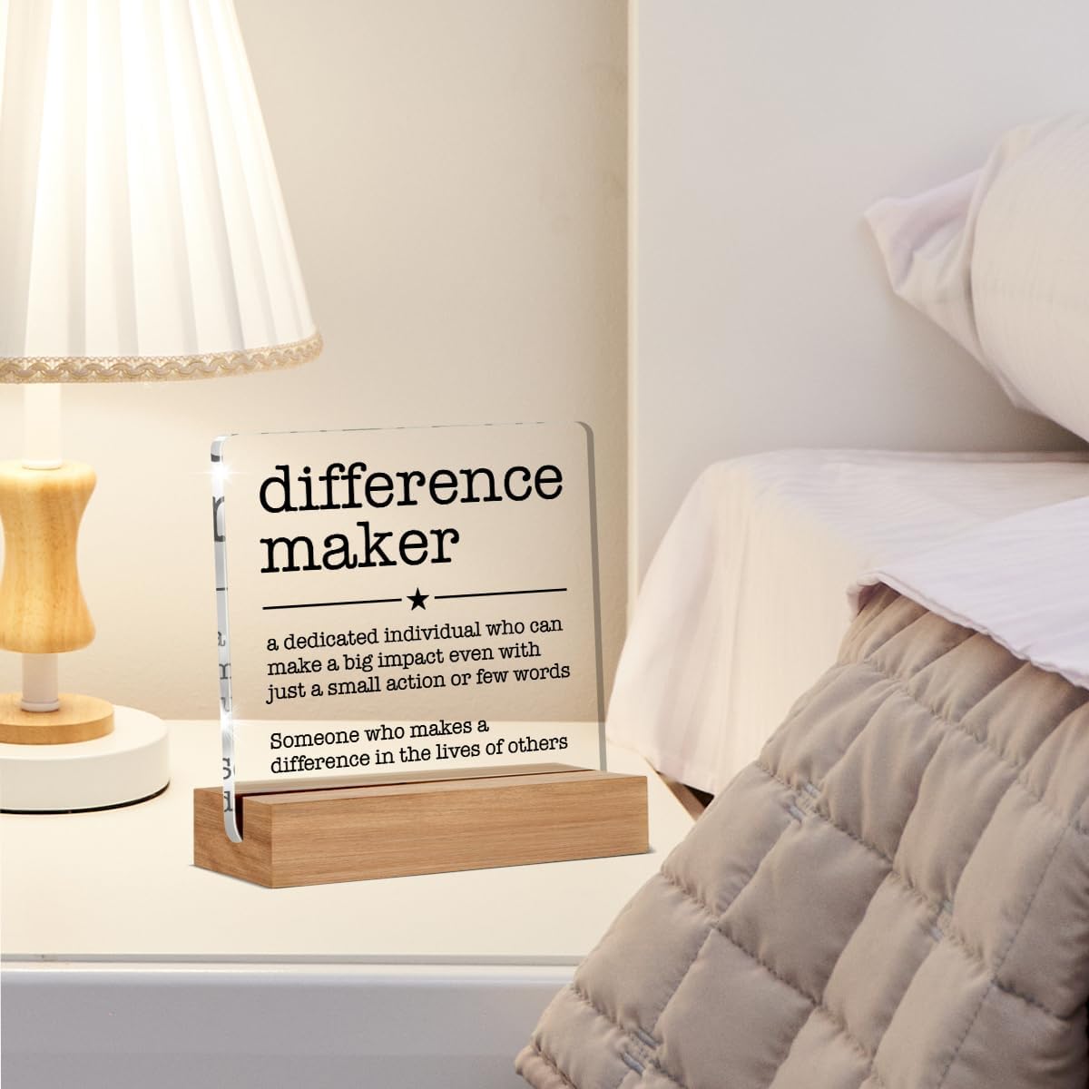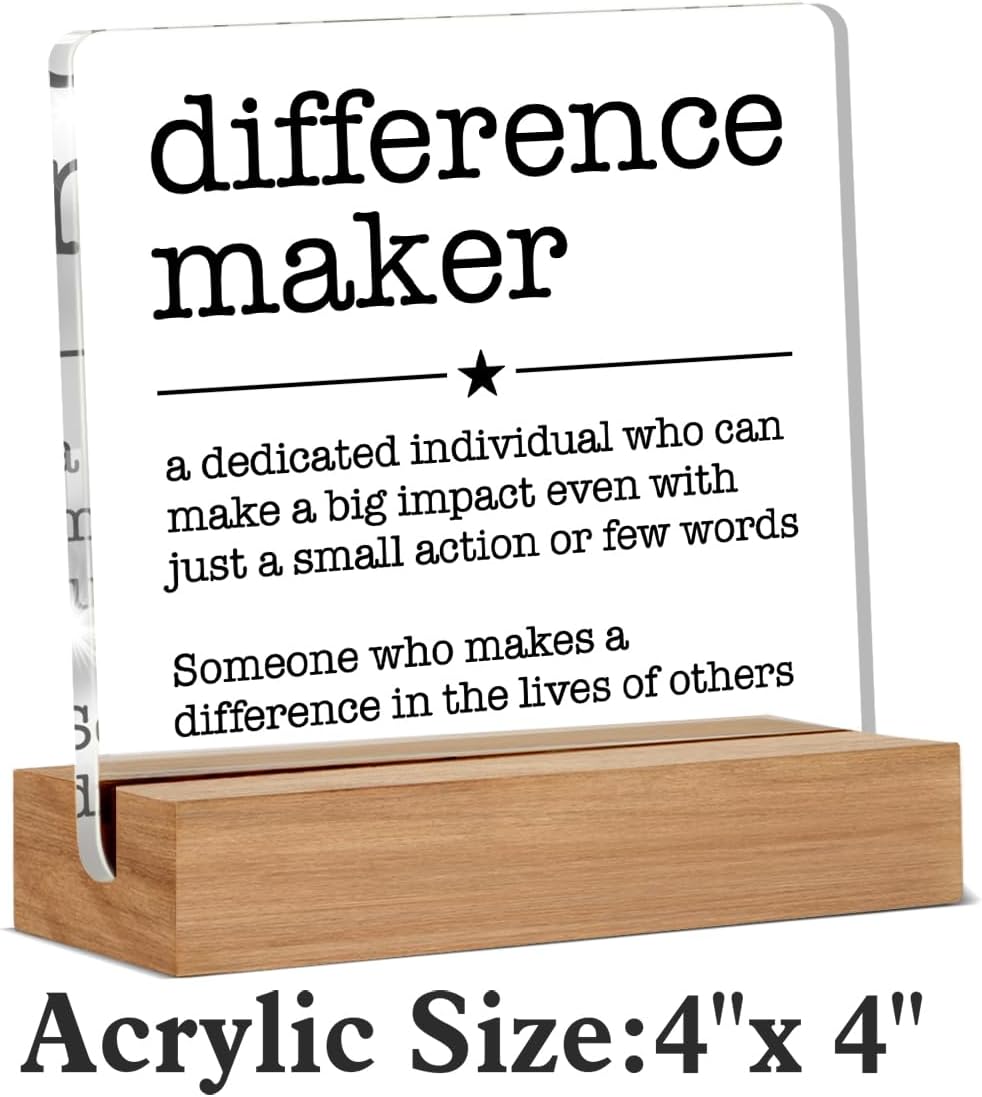 Appreciation Gifts for Leader Boss Mentor Coworker Teacher Difference Maker Gift Difference Maker Definition Clear Desk Decorative Sign Acrylic Sign With Wooden Stand for Desk Table Shelf