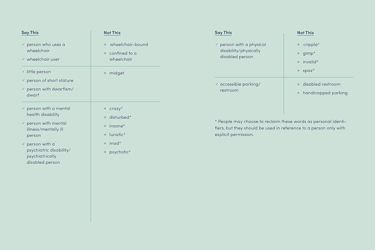 • Recognizing and avoiding ableism (discrimination toward disabled people)