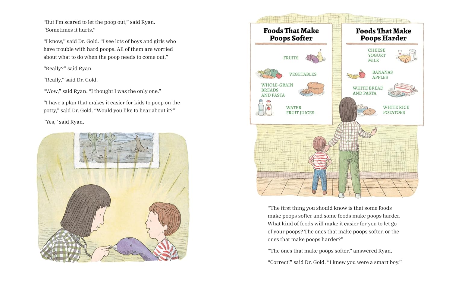 Ryan is scared to use the potty. He is afraid to have a poop, because he’s afraid it’s going to hurt. He does NOT want to go. This story, along with Ryan’s “poop program,” will help young children gain the confidence they need to overcome this common problem and establish healthy habits. Includes a Note to Parents by the author.