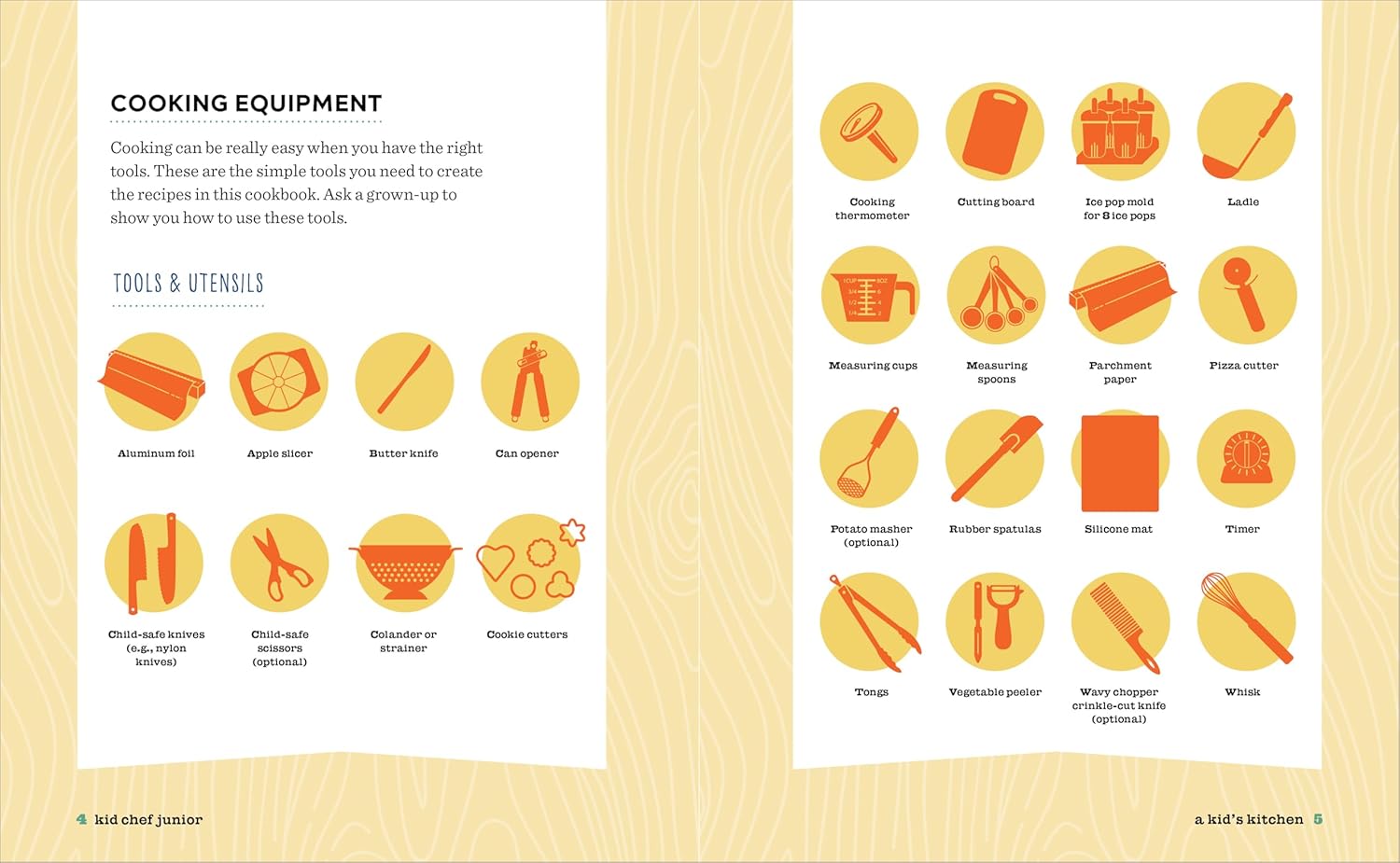 Cooking basics for kids―With simple steps and bright visuals, this kids cookbook shows them how to use different kitchen tools; read recipes; why certain ingredients go together; and how to chop, stir, whisk, and pour―just like a real chef!Pictures of each recipe―Colorful photos help kids choose the recipe they want to make and see what the finished dish should look like.Guidance for parents―Find tips for helping your child succeed in the kitchen and supervision labels so you know when to step in and when to let your little chef take the lead.
