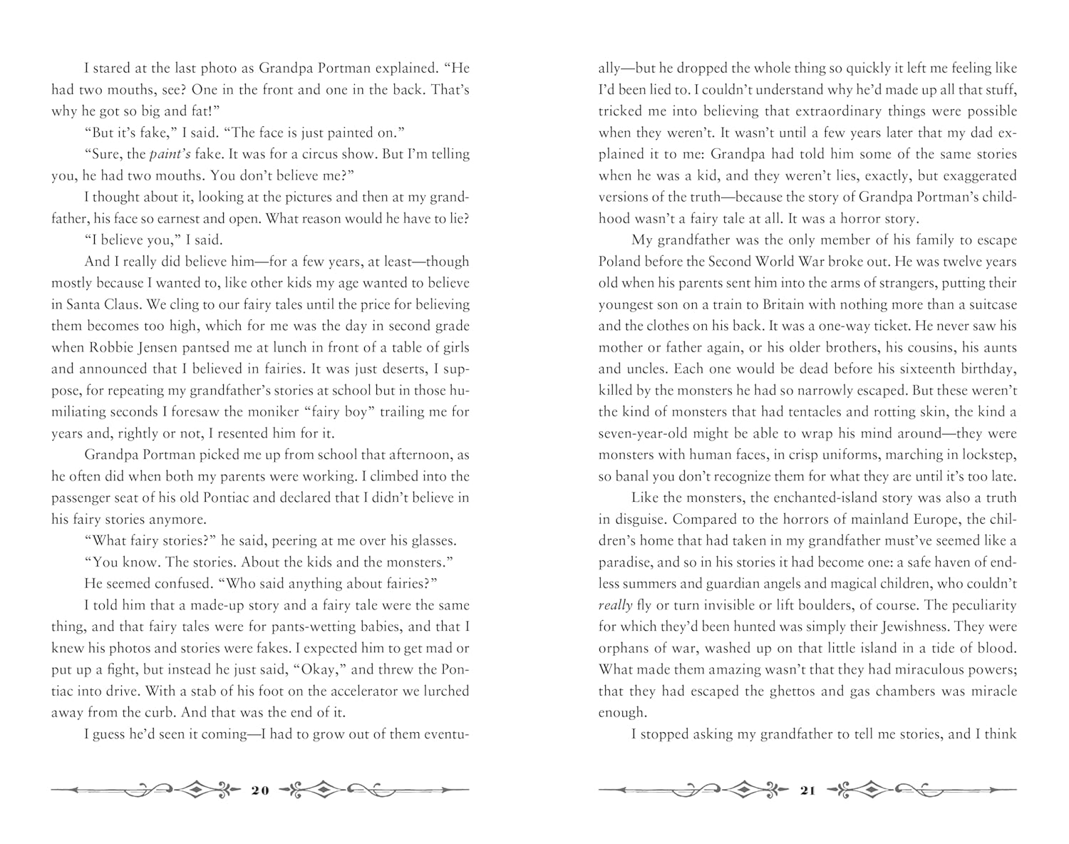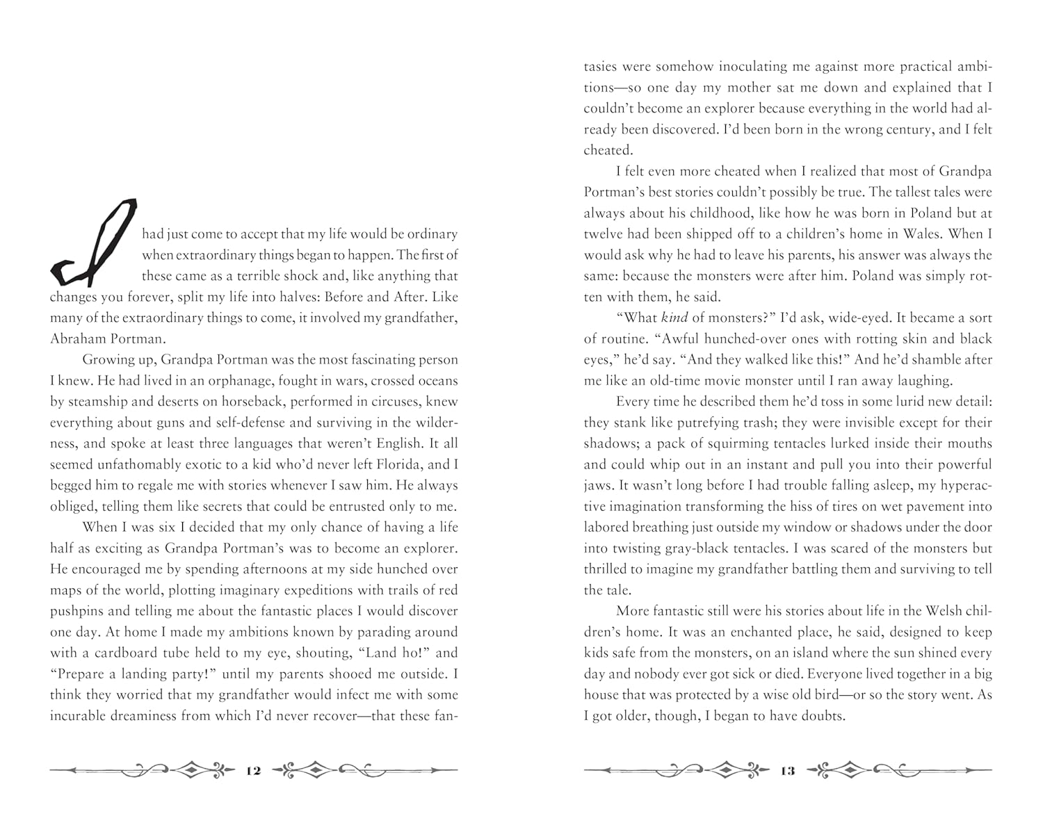 An abandoned orphanage on a mysterious island holds the key to supernatural secrets in this unusual and original first book in the one-of-a-kind Miss Peregrine’s Peculiar Children series