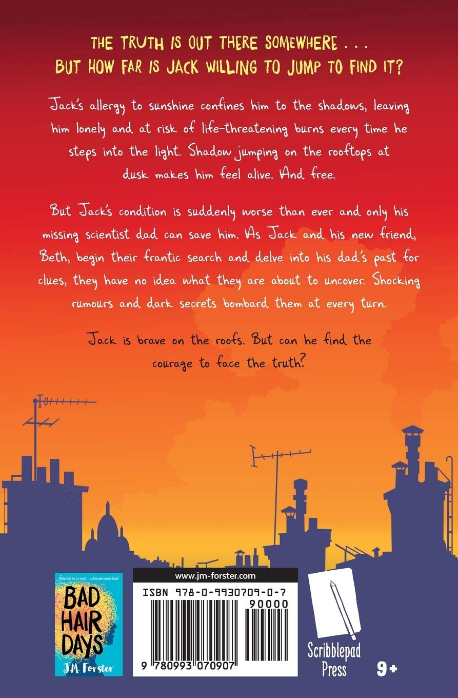 The truth is out there somewhere . . . but how far is Jack willing to jump to find it? Jack Phillips’s allergy to sunshine confines him to the shadows, leaving him lonely and at risk of life-threatening burns every time he steps into the light. Shadow jumping on the rooftops at dusk makes him feel alive. And free. But Jack’s condition is suddenly worse than ever and only his missing scientist dad can save him. As Jack and his new friend, Beth, begin their frantic search and delve into his dad’s past for clues, they have no idea what they are about to uncover. Shocking rumours and dark secrets bombard them at every turn. Jack is brave on the roofs. But can he find the courage to face the truth?