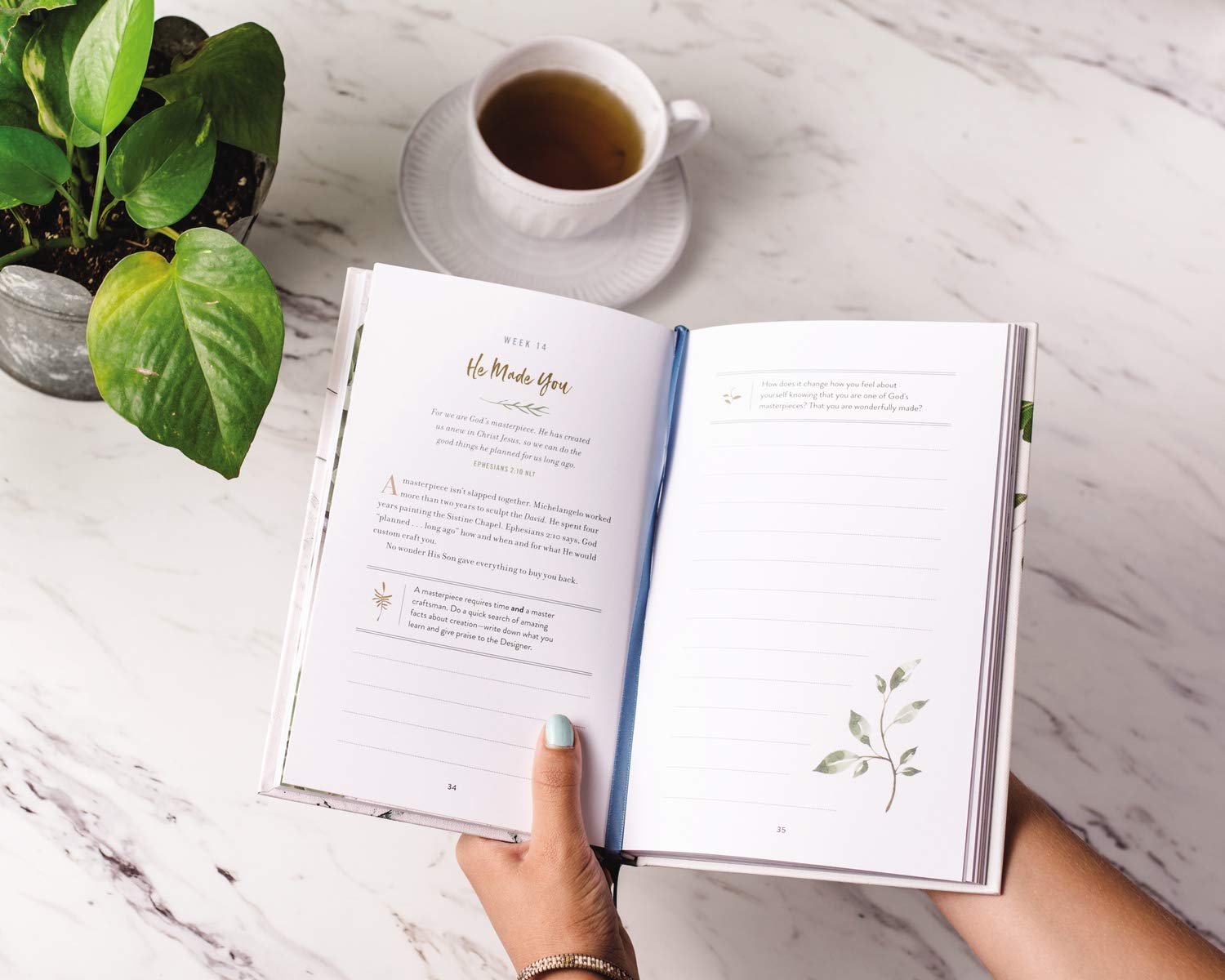 Showcases beautiful photography and calming colorsHas a ribbon marker, so you never lose your place throughout the yearlong experienceProvides a ton of journaling space, but easily fits on your nightstand, tote bag, or a gift basketIs perfect for a self-purchase, or as a gift for Christmas, New Year’s, Mother’s Day, National Best Friend Day, a welcoming gift for Bible study groups, birthdays, and other holidays